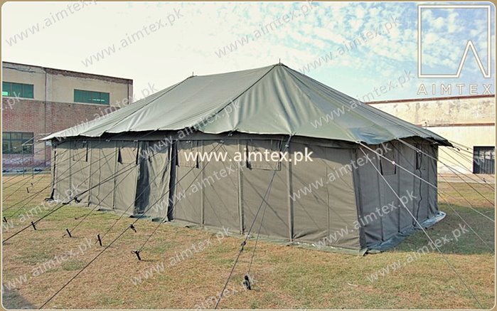 Military Ridge Pole Tent is made with double roof design with heavy supporting poles and waterproof PVC/cotton canvas. This tent is ideal for using in harsh environment. It is used for Army unit accommodation, field operations, on filed office and other filed setups.