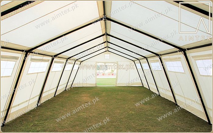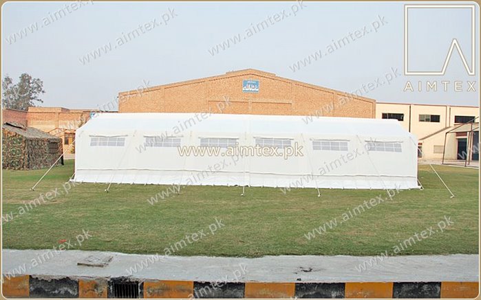 Standard multi-purpose frame tent by ICRC/IFRC Ref No. HSHETENTH82. Suitable for Emergency Field Hospitals, Health Center, Storage or Accommodation. Its Aero dynamic and Sloppy shape is ideal for tropical environment & winds. Equipped with bigger door, windows and ventilation at Gable makes it possible to use it in many situations.