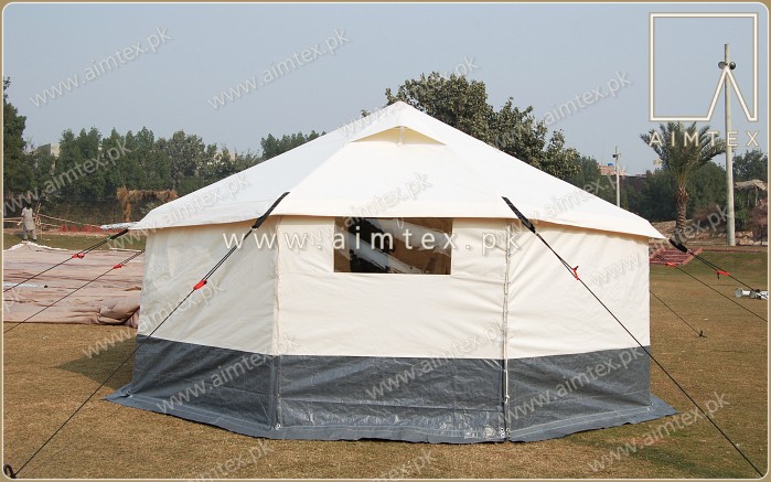 UNHCR/ICRC/IFRC Family frame tent connectable. Made of Poly-cotton Waterproof & Fire retardant optionally. Tent manufacturer Pakistan for humanitarian purpose