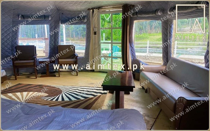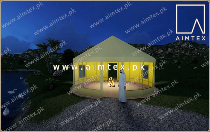 Holidays in Glamping Tents are the ultimate experience. Yurt style tents offer spacious accommodation for the sleep of friend’s group or family. The interior can be furnished with beds, chairs, table, carpets & curtains. The Yurt Tents can be equipped with a heating & Cooling system to get maximum comfortability out of it.